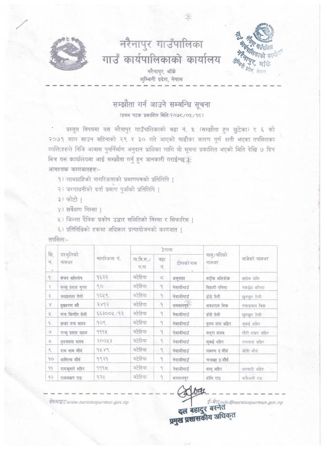 सम्झौता गर्न आउने सम्बन्धी सूचना