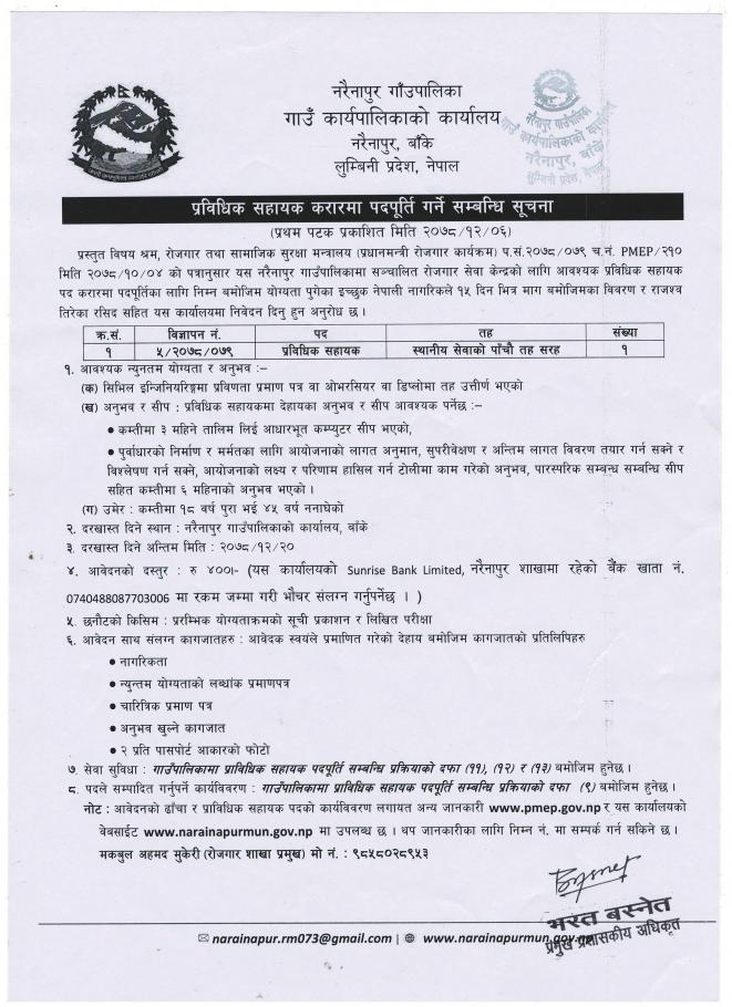 सेवा करारमा पदपूर्ति सम्बन्धि सूचना (प्राविधिक सहायक)
