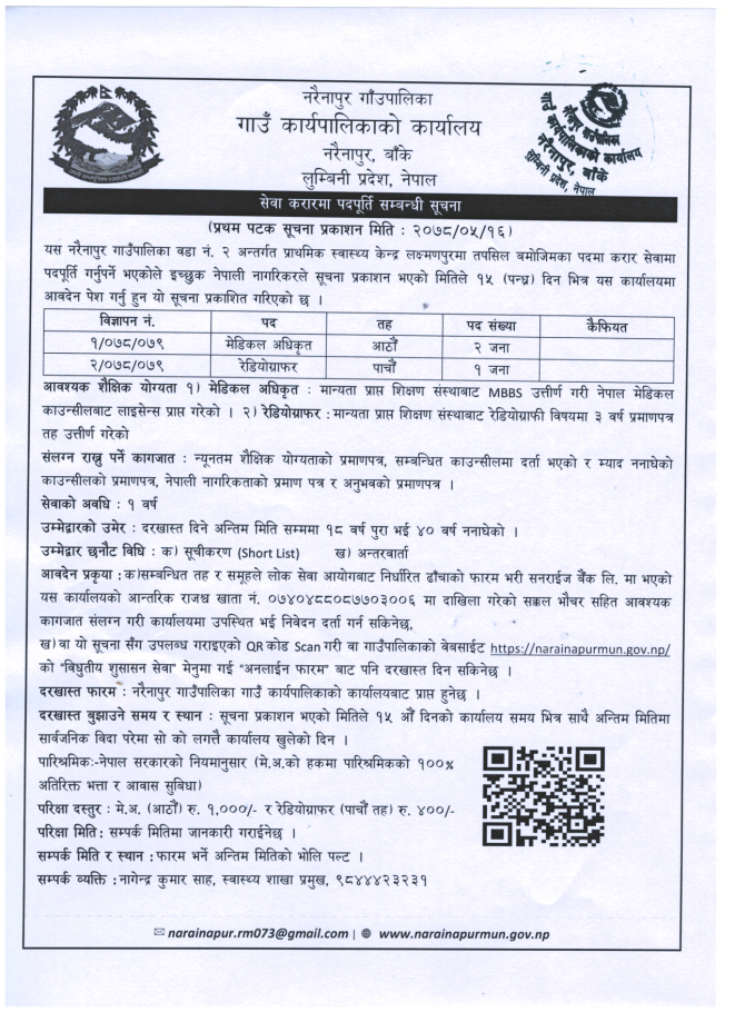 सेवा करारमा पदपूर्ति सम्बन्धि सूचना (मे.अ. र रेडियोग्राफर)