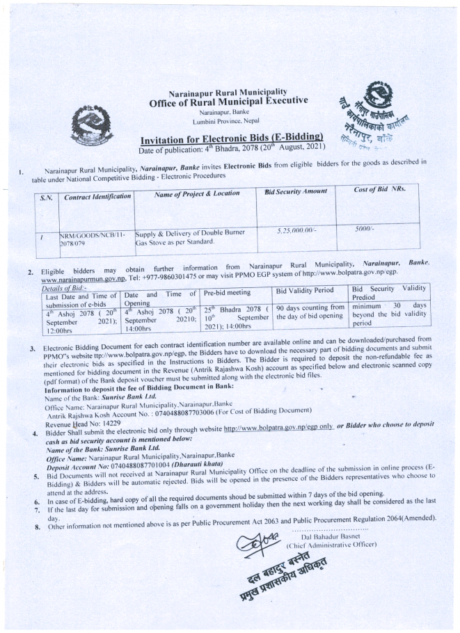 » Invitation for E-bidding (Double Burner Gas Stove)
