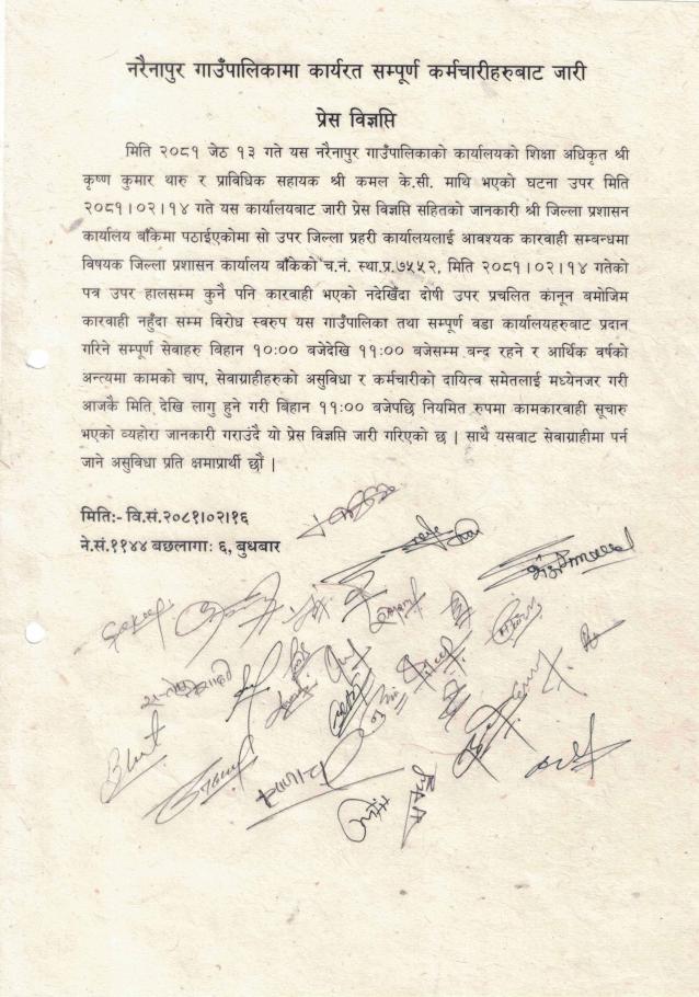 » गा.पा कर्माचारीहरुबाट जारी भएको प्रेस विज्ञप्ति